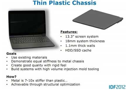Intel espera una importante rebaja de precios para impulsar las ventas de los ordenadores portátiles ultraligeros conocidos como Ultrabooks, mediante el uso de materiales plásticos.