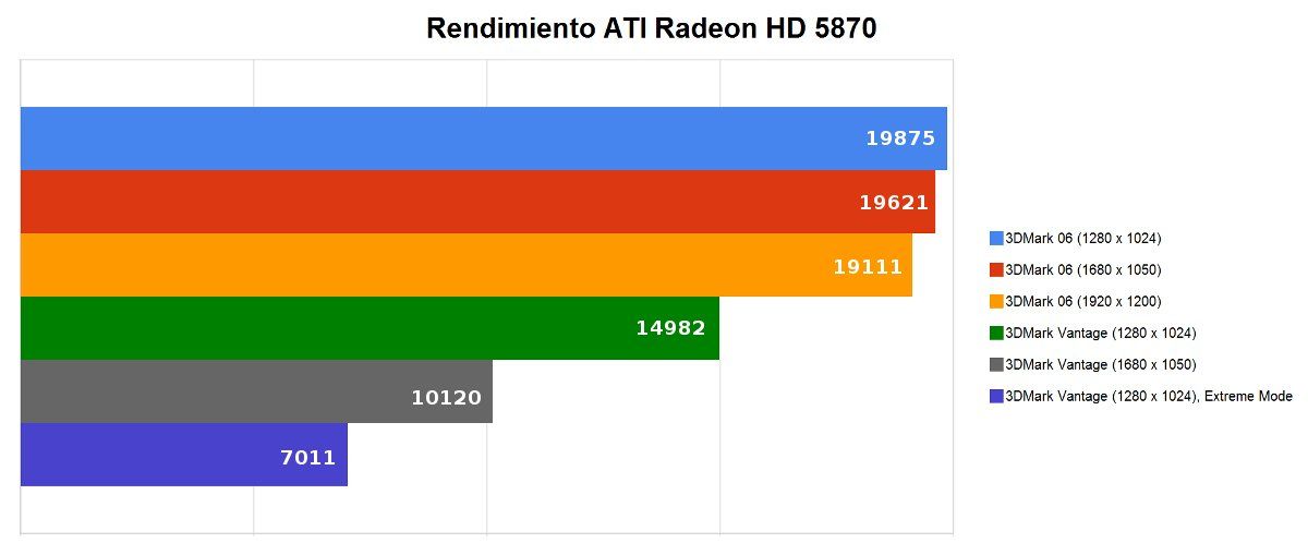 La tarjeta gráfica es un componente vital cuando hablamos de este tipo de equipos y Mountain, consciente de las peculiaridades de este nicho, ofrece varias opciones disponibles. Nuestra unidad de prueba venía con una ATI Radeon HD 5870 con 1 Gbyte de memoria GDDR5, pero podemos pedir el equipo con varios modelos de alta gama incluyendo montajes multiGPU (que, evidentemente, aumentan mucho el precio final). El modelo de referencia de esta gráfica ya pasó por nuestro laboratorio poco después de su lanzamiento, y realizamos un análisis detallado de sus prestaciones.