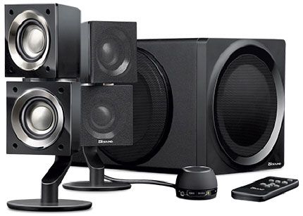 El conjunto incluye un subwoofer Creative SLAM y dos satélites que ofrecen sonido estéreo o envolvente simplemente girando la parte superior de cada altavoz y con soporte de sonido 5.1 conectando el ZiiSound mediante USB. También pueden montarse en la pared para utilizarlos como altavoces de televisor en el salón.