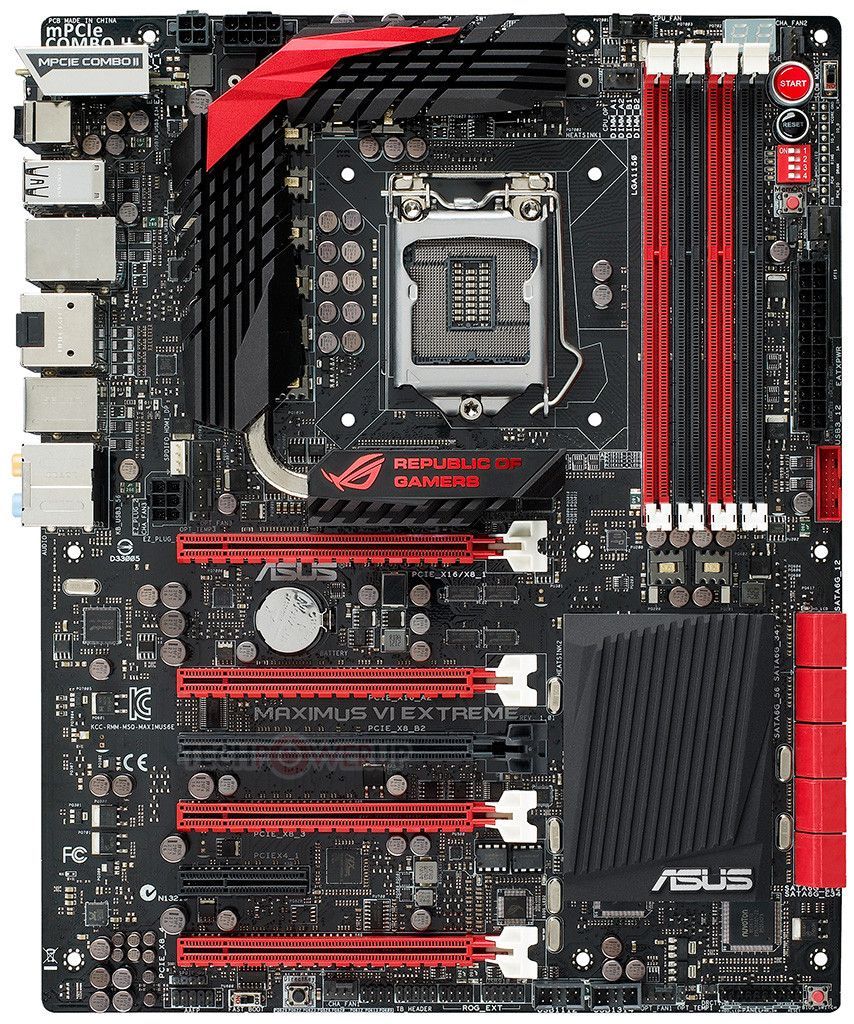 El modelo tope de gama ROG MAXIMUS VI EXTREME continua con la tradición ROG de establecer nuevos récords mundiales en la nueva plataforma Z87. Esta placa base incorpora por defecto el OC Panel, una consola para la monitorización de los procesos de overclocking y el sistema que puede ser emplazada en una bahía de 5,25” o bien como elemento externo. La MAXIMUS VI EXTREME es compatible con los módulos de memoria DDR3 a 3 GHz.