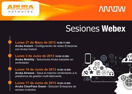 Para más información sobre las sesiones Webex organizadas por Arrow ECS sobre Aruba Networks: http://www.arrowecs.es/arrow-evento-ampliado.aspx?id=47