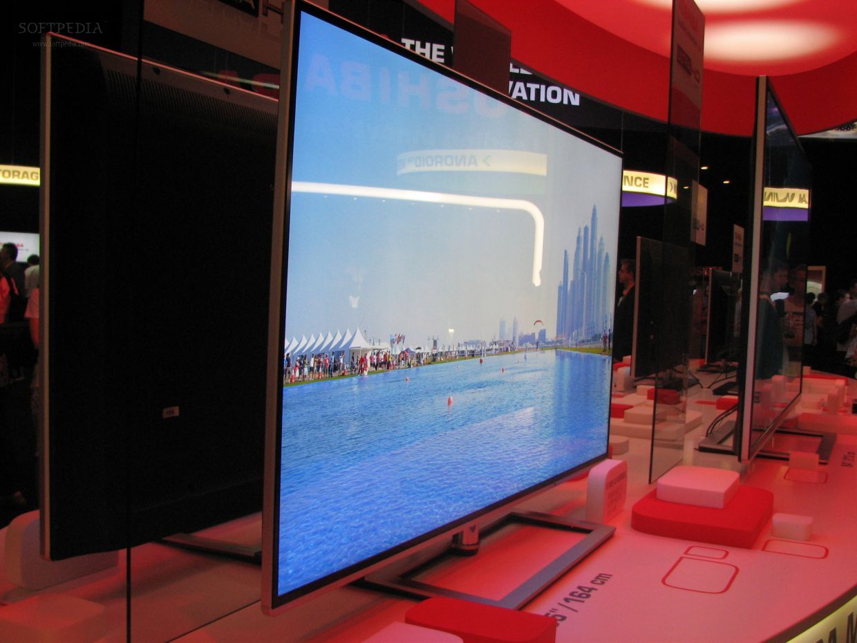Toshiba también ha exhibido un prototipo de un modelo con 50 pulgadas que se espera se ponga a la venta con precio de lanzamiento más contenido de 3.000 dólares.