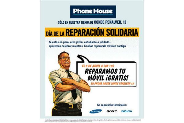 La acción de Phone House tiene sus normas. Las reparaciones de móviles se harán a estudiantes, desempleados y jubilados que se acerquen con su terminal averiado de las marcas Nokia, Sony o Samsung a la tienda de la calle Conde de Peñalver, 13 (Madrid) a partir de las 10 horas.