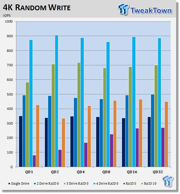 Lo dicho no sorprende, puesto que como sabemos el modo RAID 0 se caracteriza por ofrecer el mayor nivel de rendimiento a costa de sacrificar la redundancia, mientras que por ejemplo el modo RAID 10 permite disfrutar de ambas ventajas sacrificando, eso sí, rendimiento a nivel de escritura.