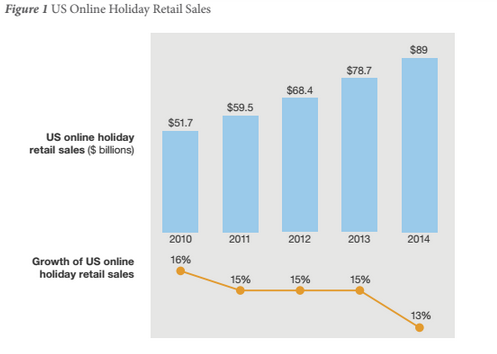Forrester Research prevé unos ingresos por comercio electrónico de 89.000 millones de dólares en la temporada navideña en Estados Unidos.
