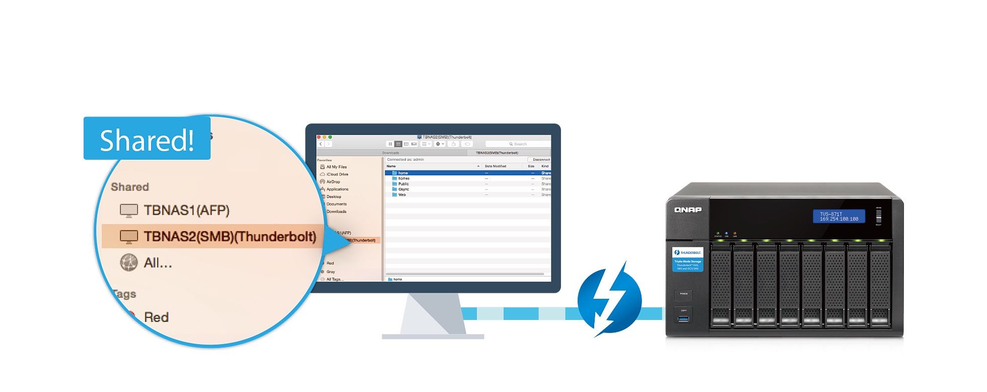 Gracias a sus características el NAS TVS-871T es un complemento perfecto para Macs con capacidad para Thunderbolt 2, ya que se pueden conectar hasta 2 estaciones de trabajo Mac a un TVS-871T para procesar la edición de vídeo en tiempo real y de forma simultánea.