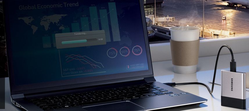 SSD portable T3 es la actualización del T1 presentado el año pasado en Las Vegas. Equipado con la tecnología propietaria de Samsung Vertical NAND (V-NAND) y SSD TurboWrite, la unidad T3 permite transferir de forma rápida y sencilla contenidos multimedia de gran tamaño y entre una gran variedad de dispositivos.