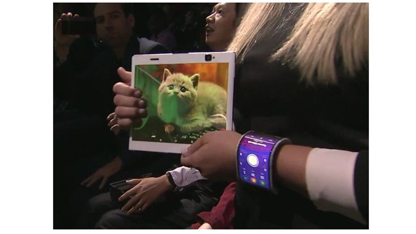 Otra de las novedades de Lenovo ha sido la presentación de un smartphone flexible que puede enrollarse en la muñeca a modo de smartwatch gigante y un tablet también flexible, que puede doblarse por la mitad, convirtiéndose en un móvil inteligente.