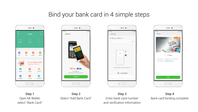 Mi Pay usa tecnología NFC, puede contener hasta ocho tarjetas por usuario y funciona de forma muy similar al Apple Pay de Apple, tanto en configuración como en uso.