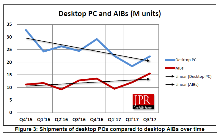Esto nos permite confirmar que el tercer trimestre de 2017 ha sido un periodo muy favorable para los vendedores de tarjetas gráficas, aunque como dijimos hay que tener en cuenta que uno de los motores más importantes que han hecho posible este crecimiento ha sido el minado de criptodivisas.