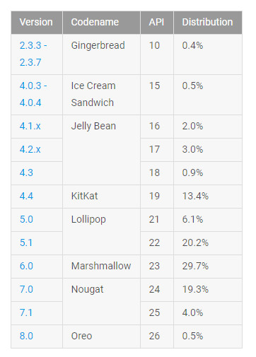 Las últimas estadísticas oficiales asignan un exiguo 0,5 por ciento de cuota de mercado a Android 8.0. La problemática se acumula porque solo el 23% tiene la penúltima versión, Android 7. Plataformas tan antiguas (hablando de tiempo tecnológico) como Android 5 y Android 4 suman casi la mitad de todos los dispositivos instalados.
