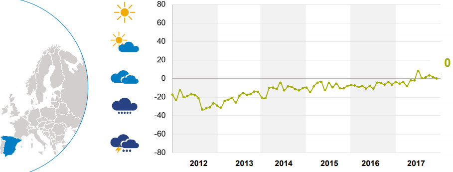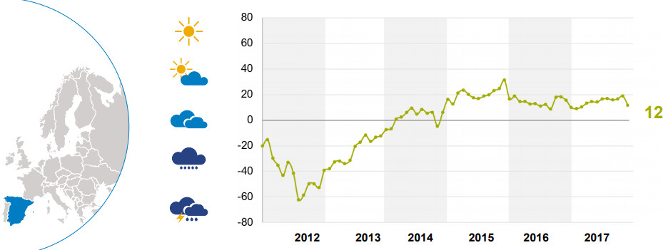 Para España persisten las dudas. Tras meses de pequeñas mejoras en la confianza, de nuevo se nota un mínimo retroceso que habrá que observar para ver si volvemos a entrar en valores negativos.
