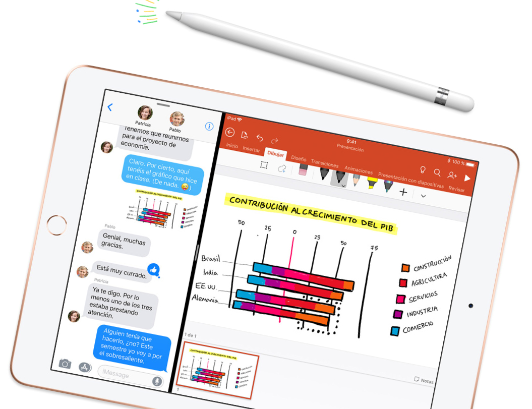 El nuevo modelo llegará con nuevas versiones de Pages, Numbers y Keynote, y funciones de colaboración. iWork será gratis para estos iPads educativos y también habrá nuevas versiones de GarageBand y Clips, y 200 Gbytes de espacio gratuito en el servicio de almacenamiento en nube iCloud.