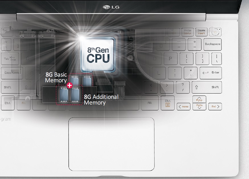 El corazón de los nuevos LG Gram es la nueva generación Core 8000U de Intel, una línea de procesadores de bajo consumo que ha dado el salto a los cuatro núcleos y ocho hilos, lo que les permite ofrecer una importante mejora de rendimiento sin sacrificar autonomía.
