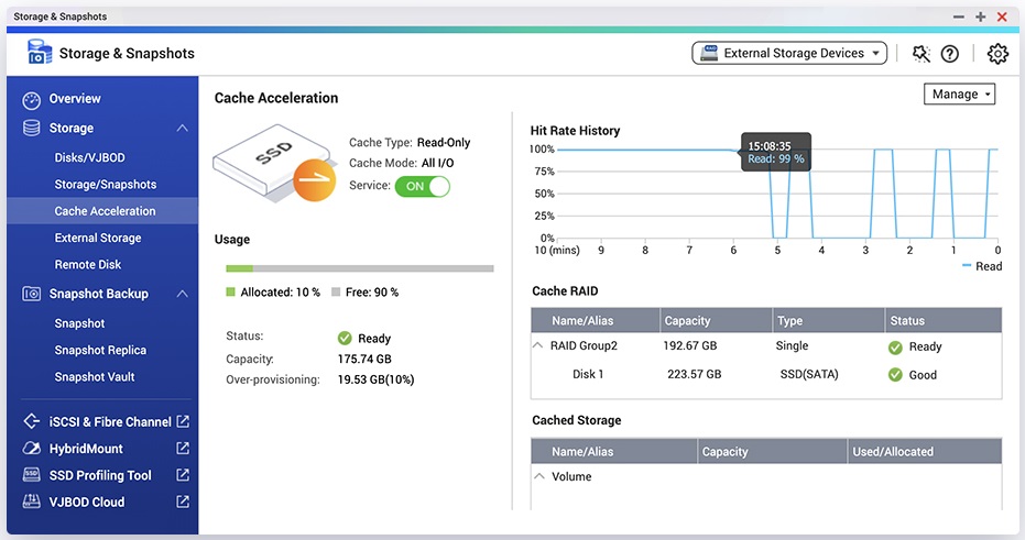• DA Drive Analyzer: desarrollado de forma conjunta por QNAP y ULINK Technology, es un motor de IA que predice la vida útil esperada de las unidades de almacenamiento, una solución muy útil, ya que nos permitirá tomar las medidas necesarias para evitar pérdidas de datos como consecuencia del fallo de unidades.
