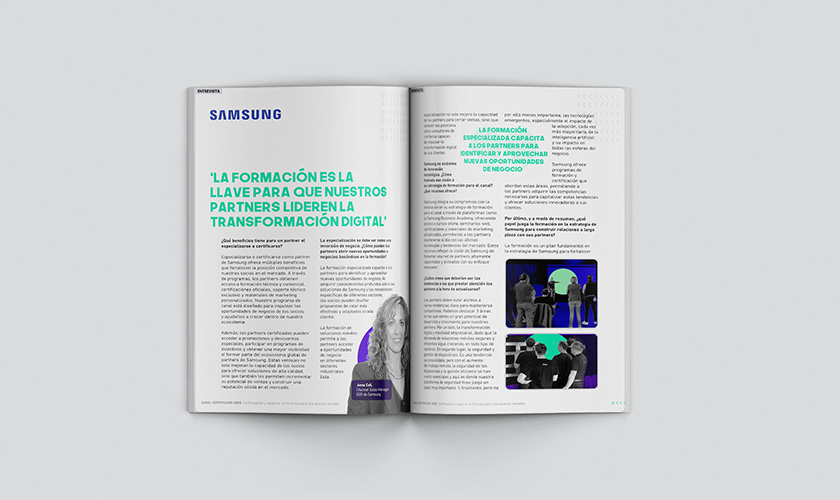 [Anna Coll, Channel Sales Manager B2B Samsung] Especializarse o certificarse como partner de Samsung ofrece múltiples beneficios que fortalecen la posición competitiva de nuestros socios en el mercado. A través de programas, los partners obtienen acceso a formación técnica y comercial, certificaciones oficiales, soporte técnico exclusivo y materiales de marketing personalizados. Nuestro programa de canal está diseñado para impulsar las oportunidades de negocio de los socios y ayudarles a crecer dentro de nuestro ecosistema.